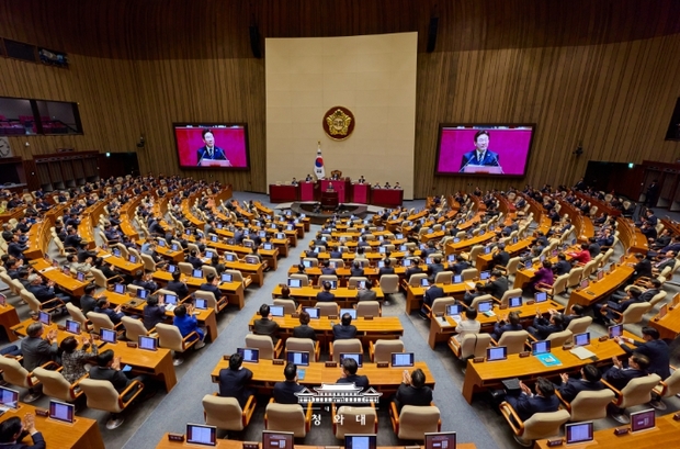 이어 "중동 전쟁으로 촉발된 위기를 슬기롭게 해결해 나가고 경제체질 개선의 기회로 삼아 우리 경제를 다시는 흔들리지 않는 반석 위에 올려놓아야 한다"며 "위기 극복의 성패는 속도에 달려 있다. 이번 예산안이 신속히 통과될 수 있도록 초당적인 협력을 부탁한다"고 말했다.